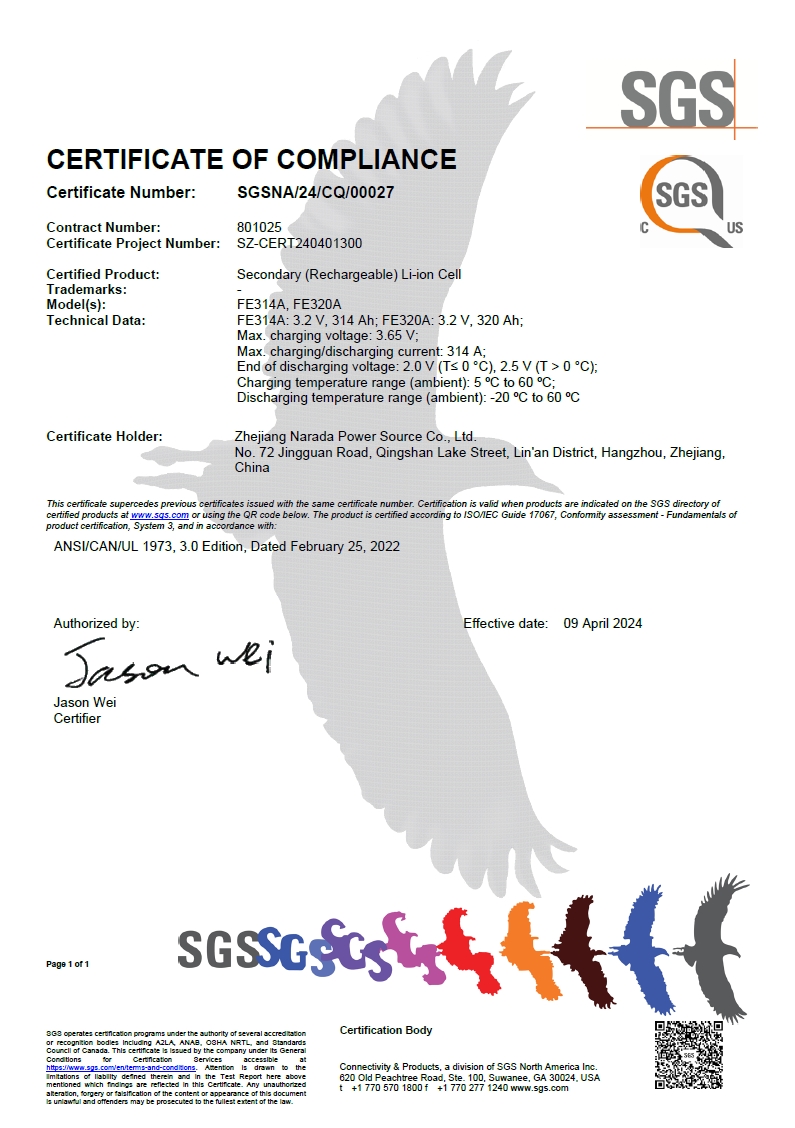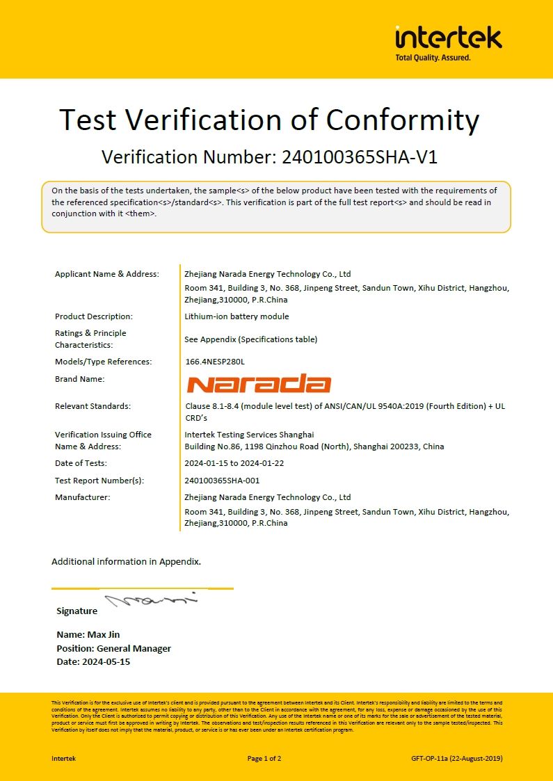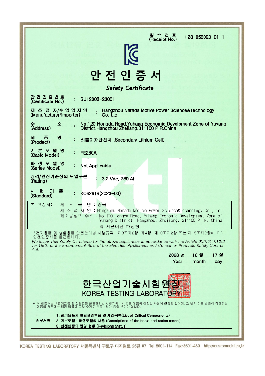 Narada Power has passed over 260 safety certifications and accreditations of global leading energy storage standards, like UL, IEC, GB, KC, etc. The improving certification systems embody our excellent strength in the energy storage industry.